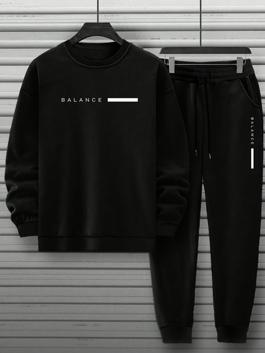 2-Piece Mens Balance Graphic Print Sweatshirt & Sweatpants Set - Sweatsuits with Loose Crew Neck, Drawstring Waist, Long Sleeve, and Outdoor Comfort