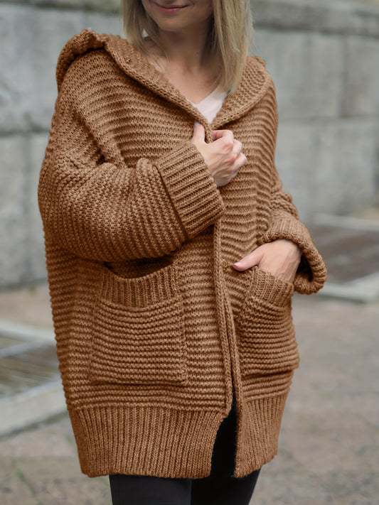 Womens Oversized Cardigan Sweaters Hooded Long Sleeve Button Down Chunky Knit Sweater Coat With Pockets