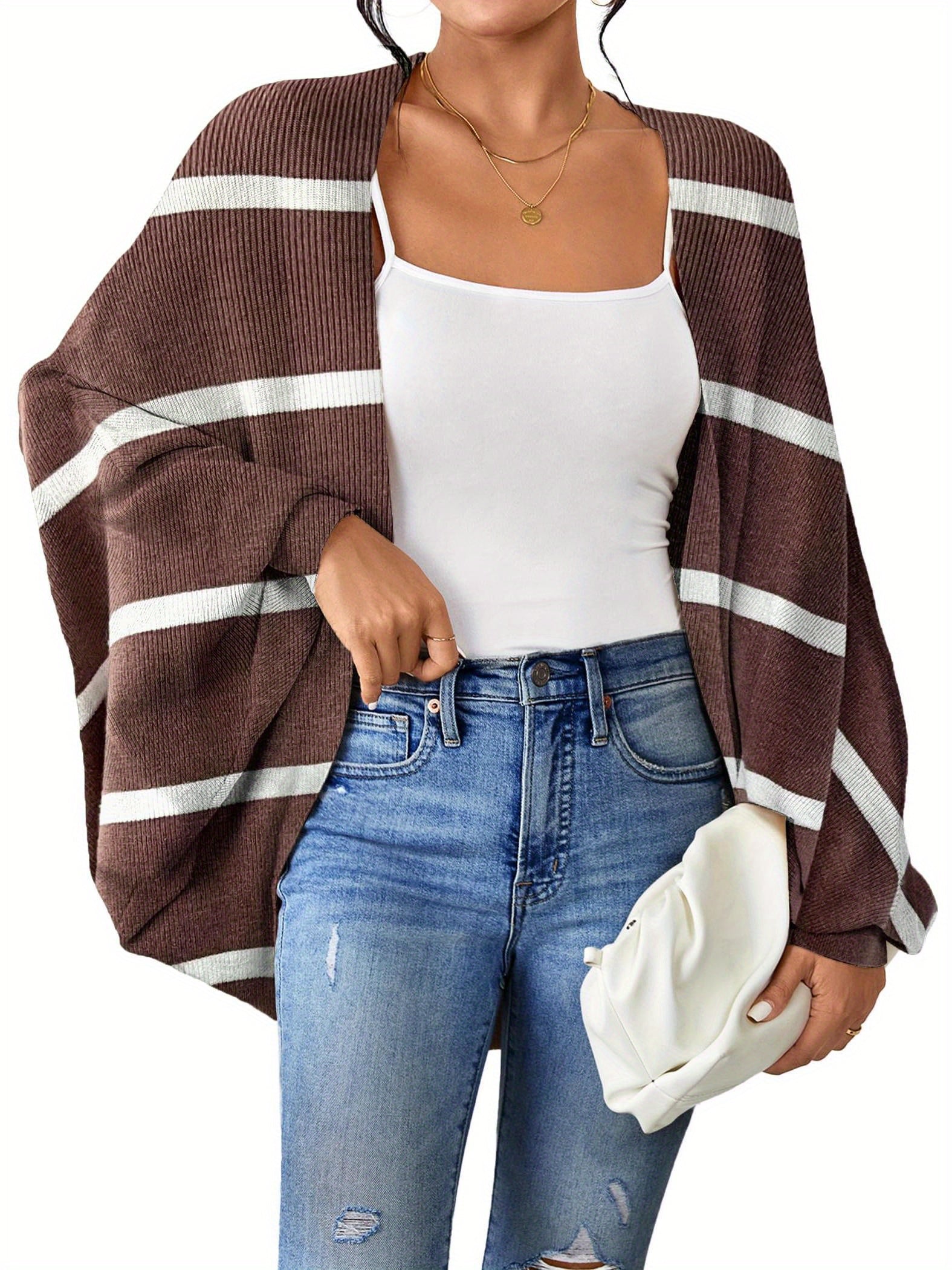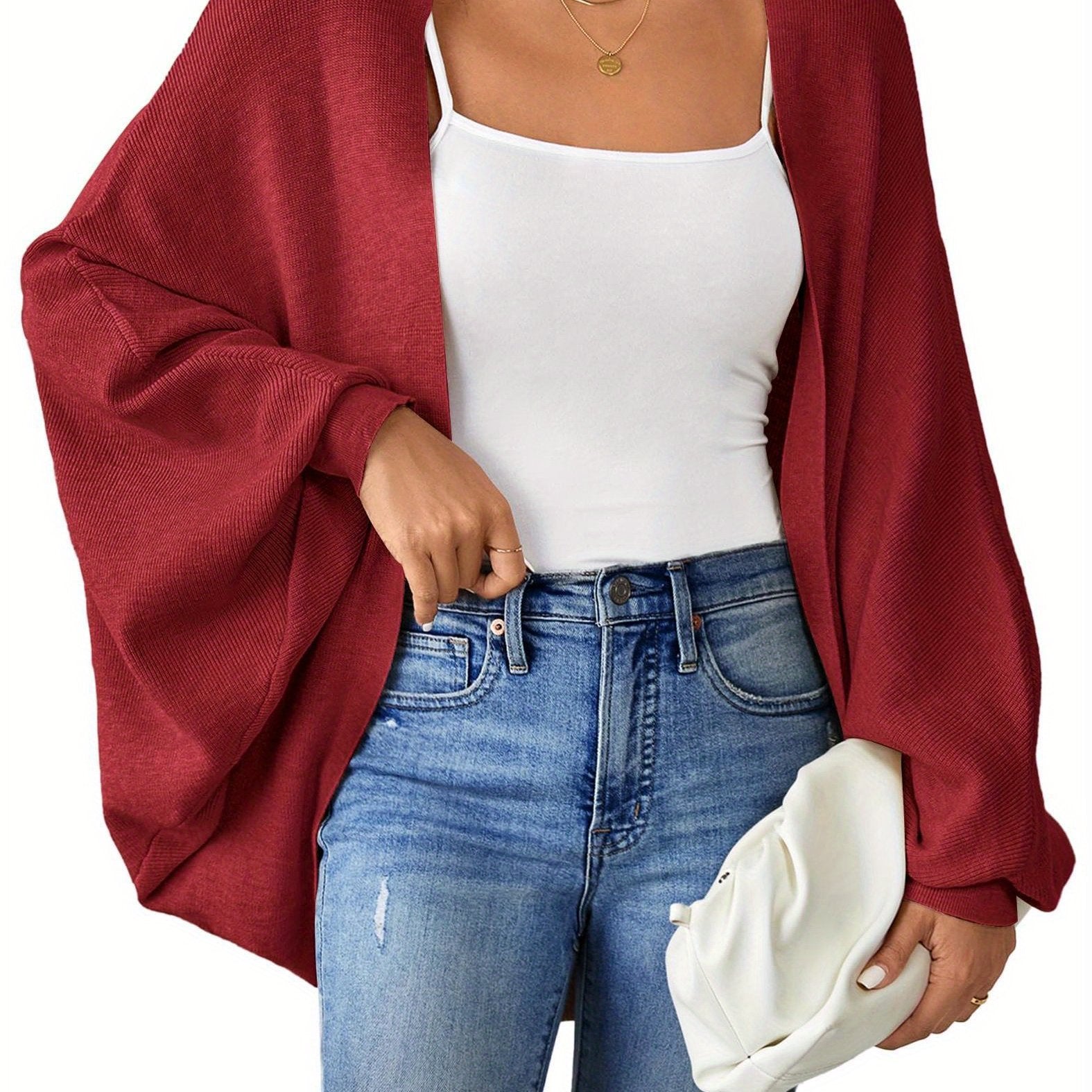 ELESOL 2024 Fall Cardigan Sweaters for Women Oversized Kimono Slouchy Wrap Batwing Sleeve Open Front Outwear Coat